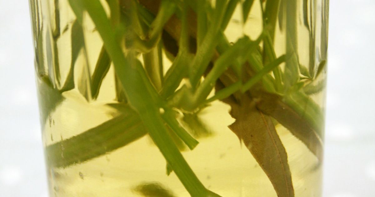 お酢の風味づけにパセリの茎を使うのです。これはよいですね。ローリエも入れれば独特の爽やかな風味がつきます。材料を入れて1週間たてばできあがり。にんにくが必要でなければ入れなくてもよいのです。